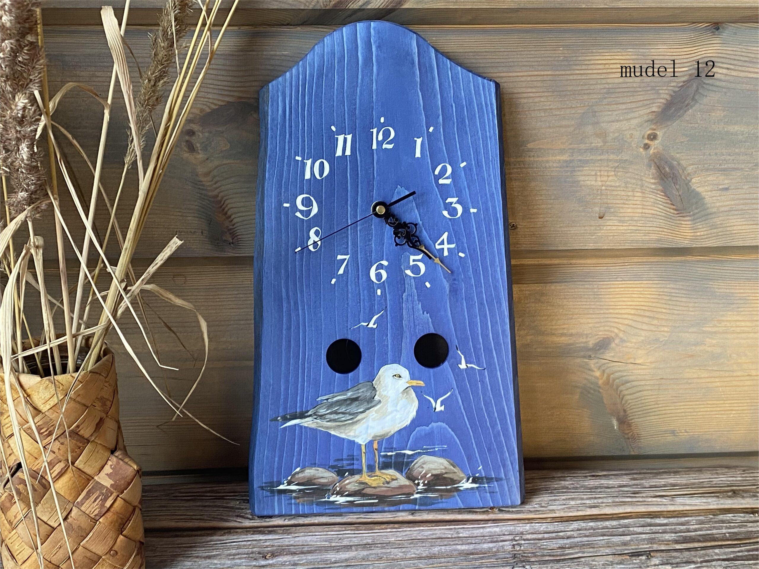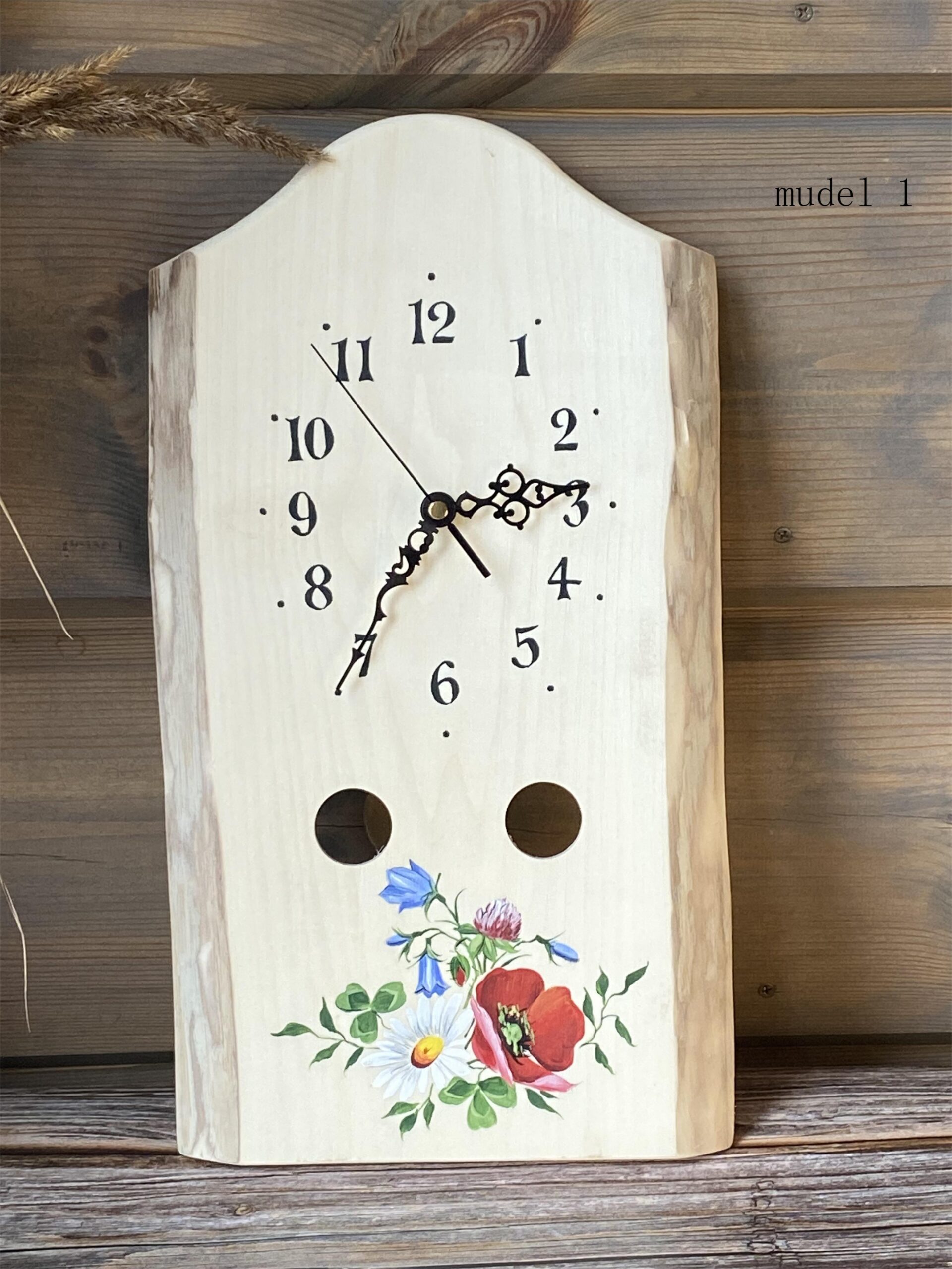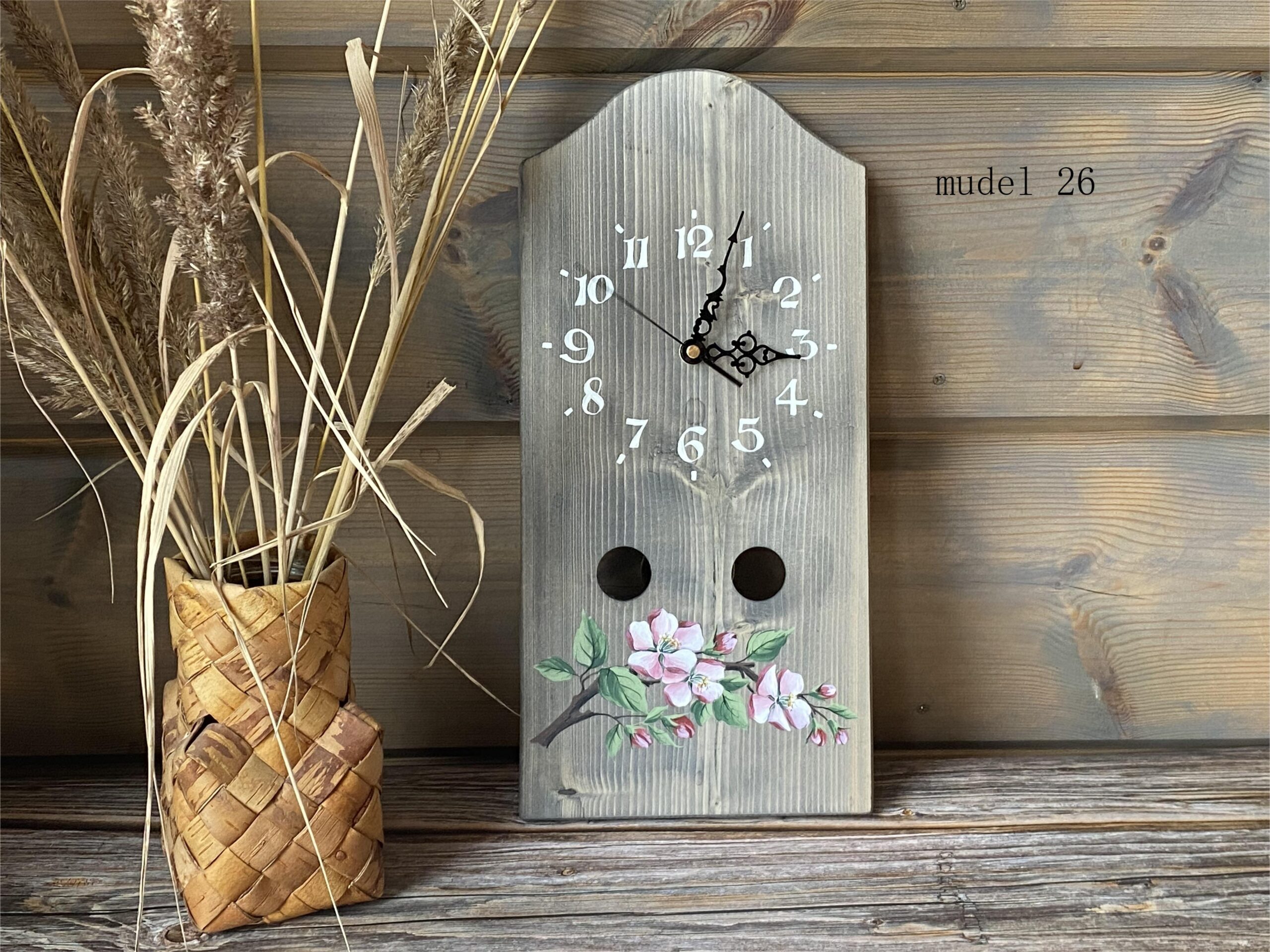 Puidust seinakell käsitsi maalitud pildiga on eriline sisustuselement, mis toob ruumi soojust ja isikupära. Iga kell on unikaalne tänu naturaalsele puidusüüle ja kunstniku käe puudutusele.