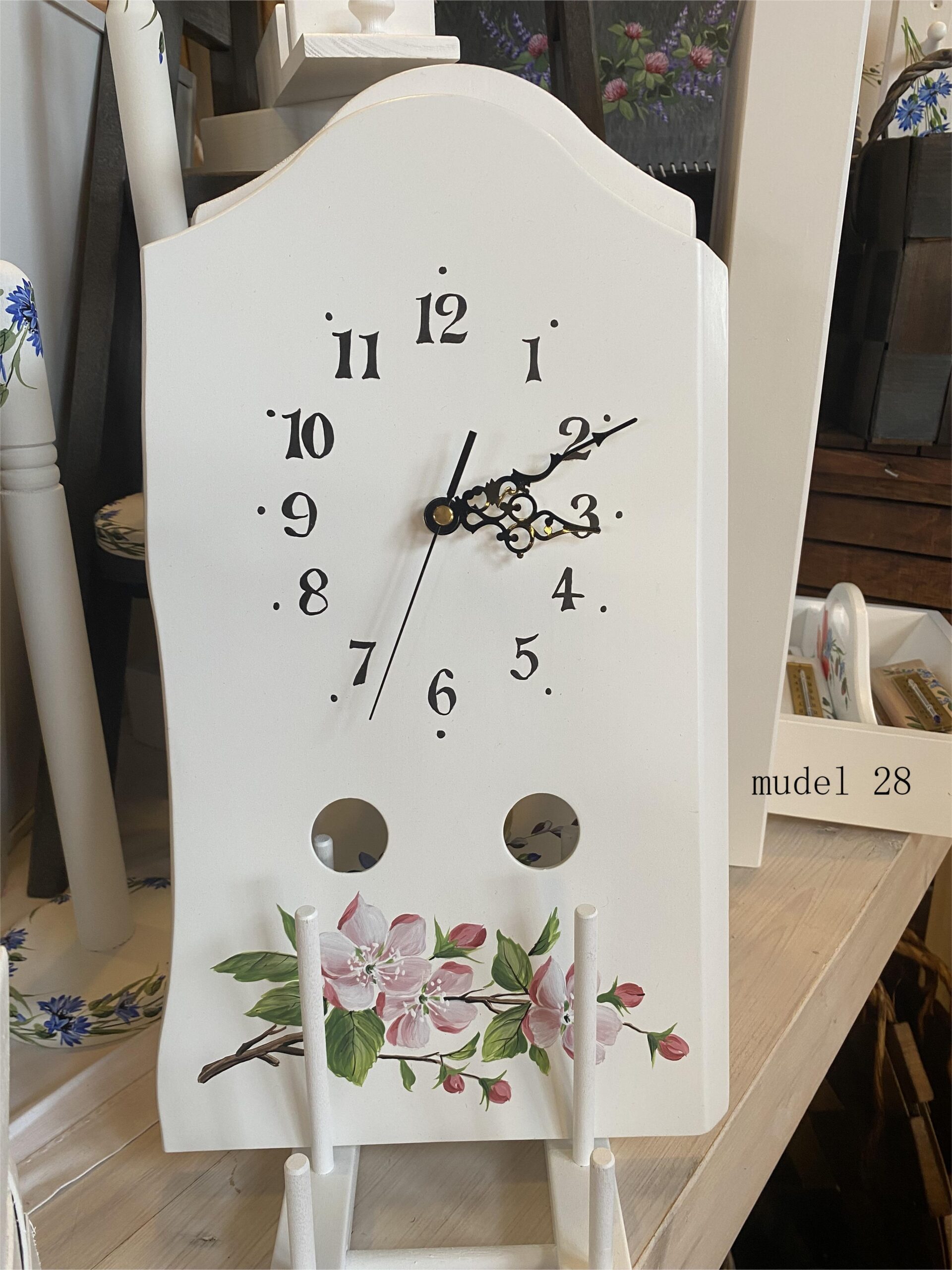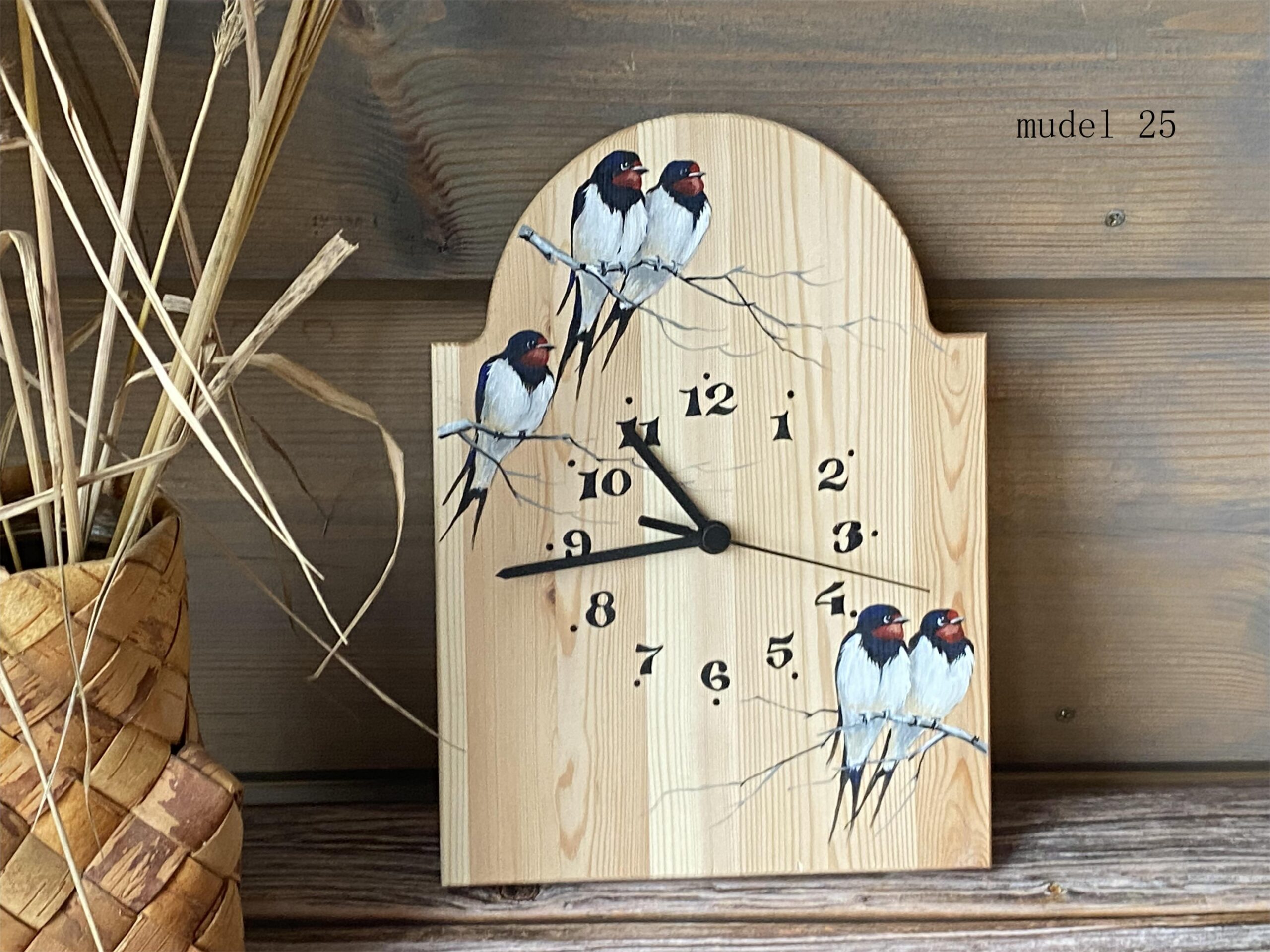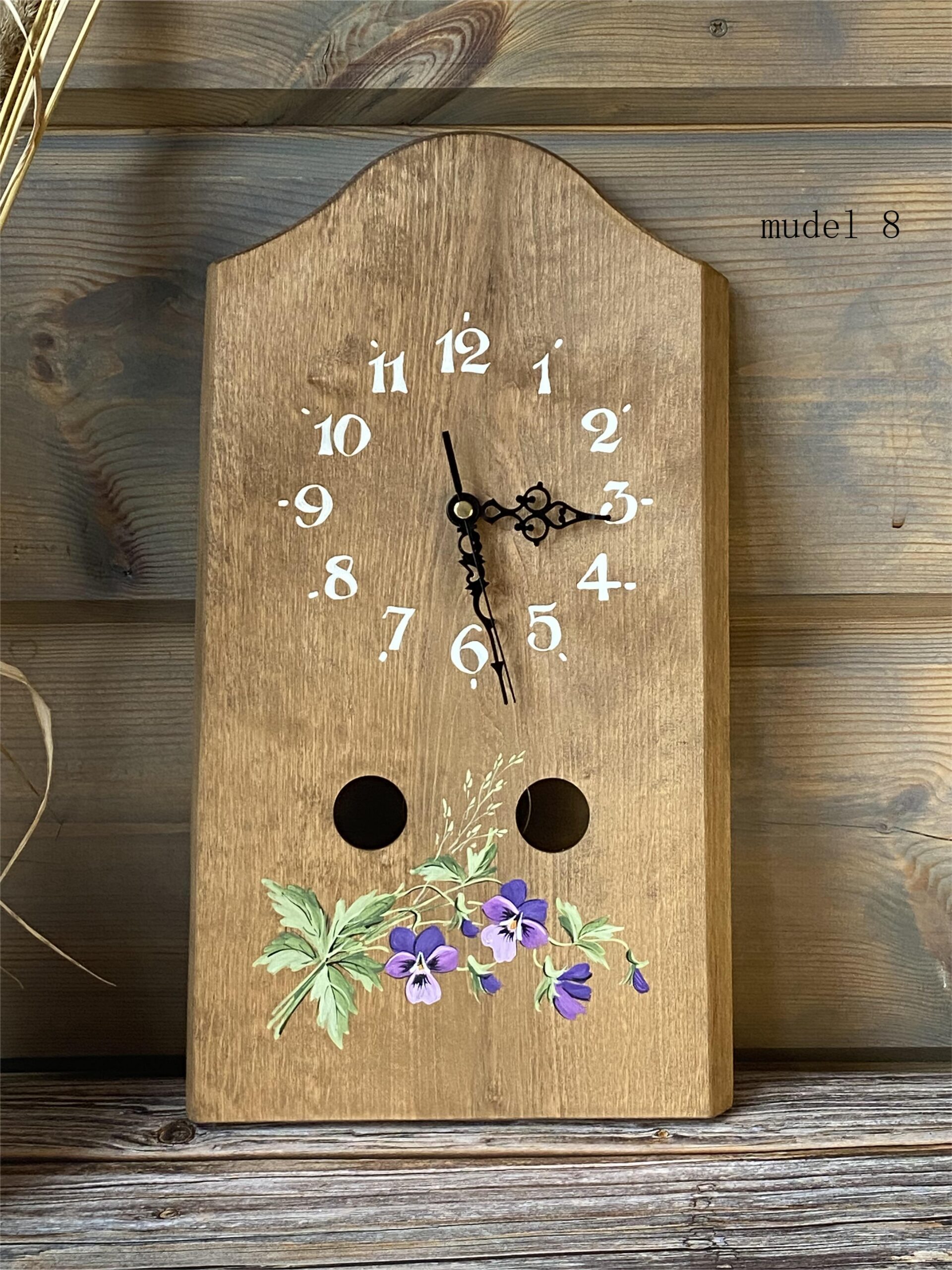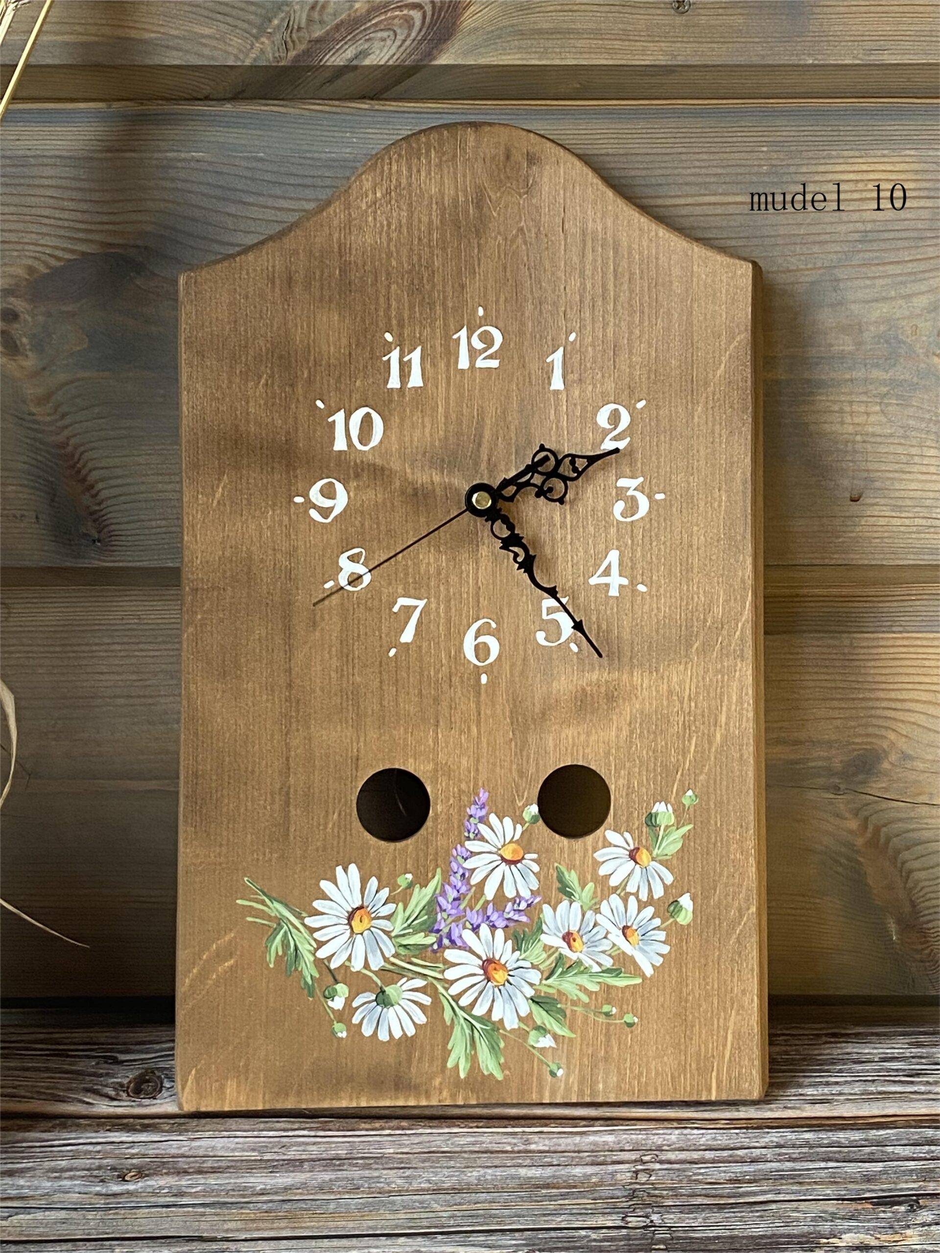 Puidust seinakell käsitsi maalitud pildiga on eriline sisustuselement, mis toob ruumi soojust ja isikupära. Iga kell on unikaalne tänu naturaalsele puidusüüle ja kunstniku käe puudutusele.